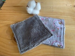 Lingette lavable et réutilisable : 1 face de coton et une face en bambou.